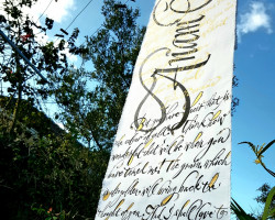 If you are surprised how liberating all this can be you will be blown away by the effect of beach calligraphy! Over 3 days , one full day and 2 mornings will be spent indoors with pen and paper and 2 afternoons will be spent on the beach. Check out Andrew's Instagram (@beachscriber) to see his calligraphy works in motion! As calligraphers we tend to think in two dimensions -- the plane of a page -- but cutting into the sand of a beach gets you seeing the third dimension, and ink and paper calligraphy in a new light. This part of the workshop will alternate between play (lots of cool tools to explore) and rhythm and movement insights.