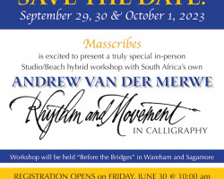 "Rhythm & Movement in Calligraphy" with Andrew van der Merwe, September 29, 30 and October 1, 2023 at 9AM-5PM