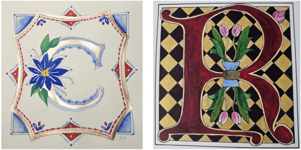 Illuminated Letters -  Left image by Cindy Rudolph, right image by Rachel Diamond Calow
