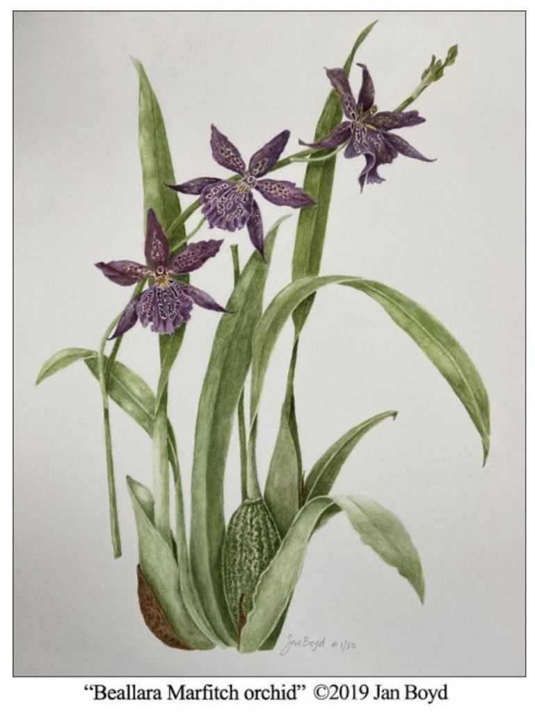 So now it might be helpful to see these principals in practice by applying them to an Orchid painting I created a few years ago. I believe that it is in reasonable Golden Section proportions. In addition to the general layout, it is also interesting to note that there are 5 large leaves, 3 smaller leaves and 3 flowers at the top. Also note that each orchid has 5 tepals and one lip…. All Fibonacci numbers!